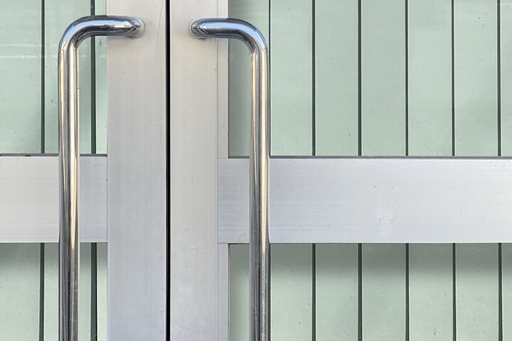 このような特徴から、店舗や商業施設のガラス扉では、見た目をすっきりさせながら重いドアを支えられるフロアヒンジが採用されるケースが多くなっています。