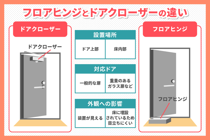 フロアヒンジとドアクローザーとの違い
