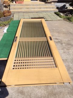 ご自宅は閑静な住宅街に建つ一軒家でした。予定どおり30分ほどで到着。インターホンで案内を乞うと、中から依頼主様が出て来られました。ガラスが割れた箇所はお聞きしていたとおり、玄関の引き戸にはめこまれていたガラスでした。詳しい状況をお伺いすると、朝は割れていなかったがつい先ほど郵便を取りに玄関に出たところ、割れていることに気が付いたとのことでした。確かに、ガラスにはひびが入っていました。交通量がやや多い道路に面していることもあり、通った車が石か何かがはじいたのかもしれないとおっしゃっていました。古民家風のお宅でもあり、やはり乳白色のくもりガラスの方が最適だと思いましたので、日本板硝子株式会社のくもりガラスをご提案いたしました。依頼主様もそれでよいとのことでしたので、費用や作業時間を説明して作業開始しました。ガラスを適切な大きさにカットしてはめ込み、30分足らずで作業は終了。元どおりの趣きのある玄関になり、ご主人様にもお喜びいただきました。もちろん、割れたガラスも持ち帰りました。