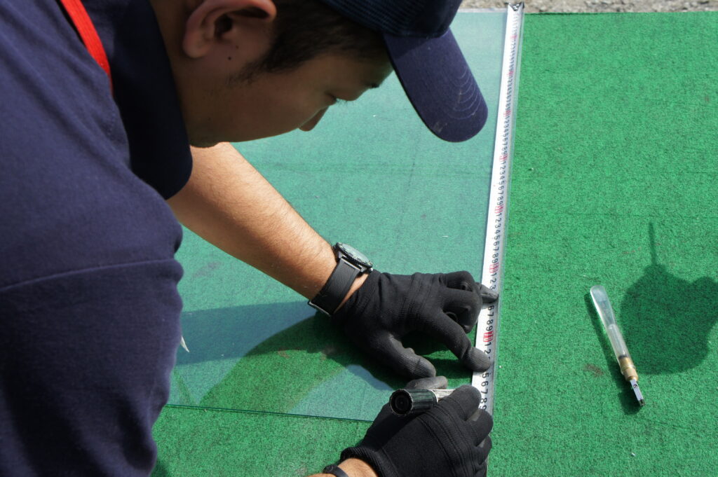 受験勉強中のお子さんがいるお部屋で、寒さと音で集中できないとのことでした。そうした状況のなかで広島県呉市宮原のお客様からお電話があったのは秋口の台風シーズンのことでした。テラスハウスのキッチンの窓ガラスが全体的に割れていたとのことで、寒さ・隙間風が入るとおっしゃっていたそうです。私に連絡が入り、「何度かお電話いただいていた方です」と聞き、お待たせしてしまった可能性があります。早速現地へ駆けつけました。ガラス片を踏まないよう、スリッパを出してくださっています。正方形に近い小さなガラスが使われていたキッチンの窓ガラスにはビニール袋で覆っていた跡がありましたが、一時的な処置では足りない状況です。雨や風が吹き込む恐れもある状態でした。もともとは一般的な窓ガラスが入っていましたが、お客様と相談し防音ガラスへの入れ替えをご提案しました。防音タイプはガラスを2枚重ねて、その間に特殊な中間膜を挟んだ合わせガラスです。中間膜が音の振動を吸収して外部騒音を軽減します。今回は30cmx90cmで厚み約10mmを選びました。合わせガラスは割れた場合でも中間のフィルムが破片を保持するので飛散しにくく、防犯面でも副次的なメリットがあります。一挙両得のガラスとして採用されるケースが増えています。養生をしっかり行い、古いガラスを丁寧に撤去。枠を清潔にしてから新しいガラスを設置し、シーリングで固定しました。作業中にお客様がお茶を出してくださり、温かい気持ちになりました。作業はおよそ90分で完了しました。ガラス交換後、掃除機と粘着テープを使用して念入りな清掃を実施しています。お子さんやペットのいるご家庭ではとくに気を遣う部分で、微小な破片も漏らさず回収した上でお引き渡しするようにしています。ガラス交換は通常の作業ではないので、費用や施工にかかる時間のイメージがわかないという方が多いです。ガラスの緊急対応にお電話ください、ガラスの種別やサイズ、設置場所をお聞きしたうえで目安の費用と所要時間の目安をお伝えできます。正式なお見積りは、現地確認後に出しますが、そこまで差が出ることはありません。完了後、翌日ご連絡のお電話をいただき「昨日はよく眠れました」との嬉しいお言葉がありました。田んぼが広がるのどかなエリアですが、冬季に強い風が吹く地域です。ガラストラブルは唐突に生じることですが、プロに任せれば思ったよりスムーズに解決できることが少なくありません。呉市宮原エリアでお悩みがあれば、何でもお問い合わせください。お見積りまでは無料で対応いたします。