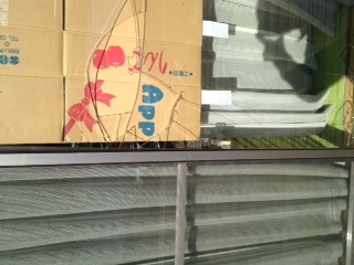 がはめ込まれており、台風で隣家の植木鉢が直撃、破損してしまったというお話しです。