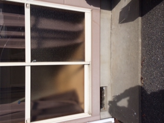 その日は前日に規模の大きな台風が直撃し、各地でさまざまな被害をもたらしました。ガラス修理の依頼も数多く頂戴し弊社も慌しく動いている中、京都市内にお住まいのお客様からも勝手口の窓が割れたので直して欲しいというお電話をいただき、早速交換作業に向かいます。ご自宅一軒家の裏、台所直通のドアの上部にワイヤー入りガラス